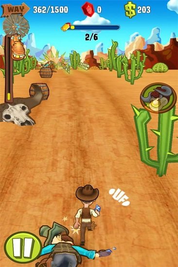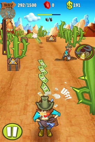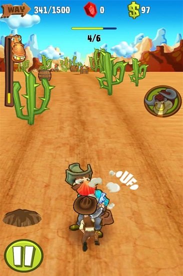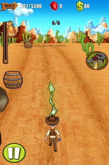 牛仔射击是一款充满西部风情的动作跑酷手游,将带你体验狂野牛仔的冒险之旅。在这款游戏中,玩家将化身为一名潇洒不羁的西部牛仔,骑上心爱的骏马,驰骋在广袤无垠的沙漠之中。你需要灵活躲避各种障碍物,同时用手中的枪械击退沿途的敌人,并收集散落的美元。游戏场景设计丰富多样,从荒凉的戈壁到热闹的西部小镇,每一处都充满了浓郁的西部特色。搭配极具节奏感的背景音乐,让玩家仿佛置身于真实的西部世界。如果你热爱跑酷游戏又钟情于西部题材,不妨前往单机100下载体验这款独特的作品。