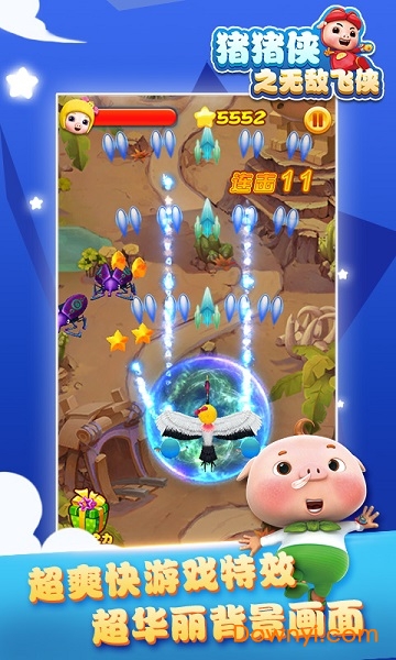 猪猪侠之无敌飞侠最新安卓版是一款充满童趣与激情的竖版3D飞行射击手游。游戏以经典动画IP猪猪侠为核心,创新性地将雷电式弹幕玩法与角色养成系统完美结合。玩家将操控Q萌的猪猪侠角色,在色彩斑斓的3D场景中展开惊险刺激的空中冒险。游戏不仅完美还原了动画中的五灵变身系统,还加入了14种特色怪物和数十种强力道具,通过华丽的弹幕特效和流畅的操作手感,为玩家带来沉浸式的飞行射击体验。无论是单人闯关还是挑战特殊任务,都能让玩家感受到不一样的游戏乐趣。