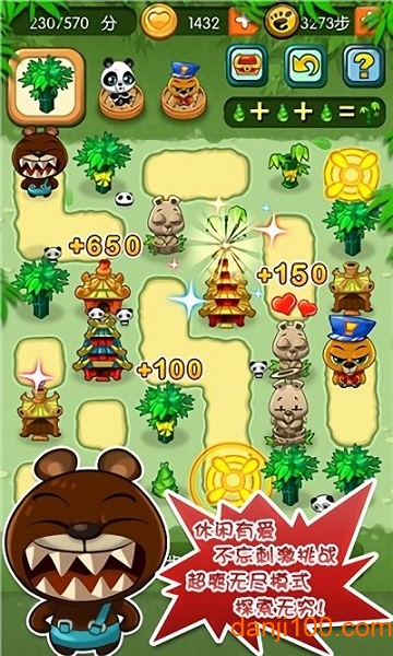 章节闯关模式:包含12大章节共600+主题关卡,每个关卡都经过精心调校。限时挑战赛:每日开放不同的功夫试炼特殊规则关卡,考验玩家的临场应变能力。师徒系统:解锁乌龟大师后可获得双倍积分加成,让闯关事半功倍。道具工坊:自由组合爆竹、重锤等8种辅助道具,打造个性化消除策略。成就殿堂:收集150+电影相关主题成就徽章,满足收藏爱好者的需求。社交排行榜:微信/QQ好友战力值实时比拼系统,让消除游戏也能社交互动。