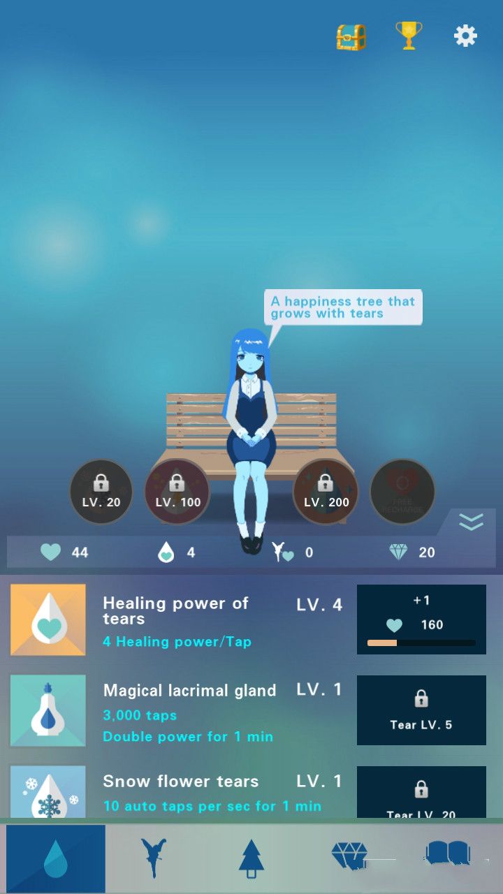 《治疗之泪》是一款充满温暖与治愈气息的休闲手游,它将情感与成长完美融合在简单的玩法中。玩家通过收集女孩晶莹的泪水来培育一棵神奇的生命之树,每一滴眼泪都会让大树焕发新的生机。游戏以清新唯美的画风营造出梦幻般的童话世界,小女孩灵动的造型与大树共同演绎着感人的成长故事。这种独特的互动机制不仅带来轻松愉悦的游戏体验,更传递着关于爱与希望的美好寓意。