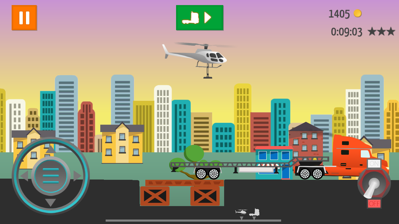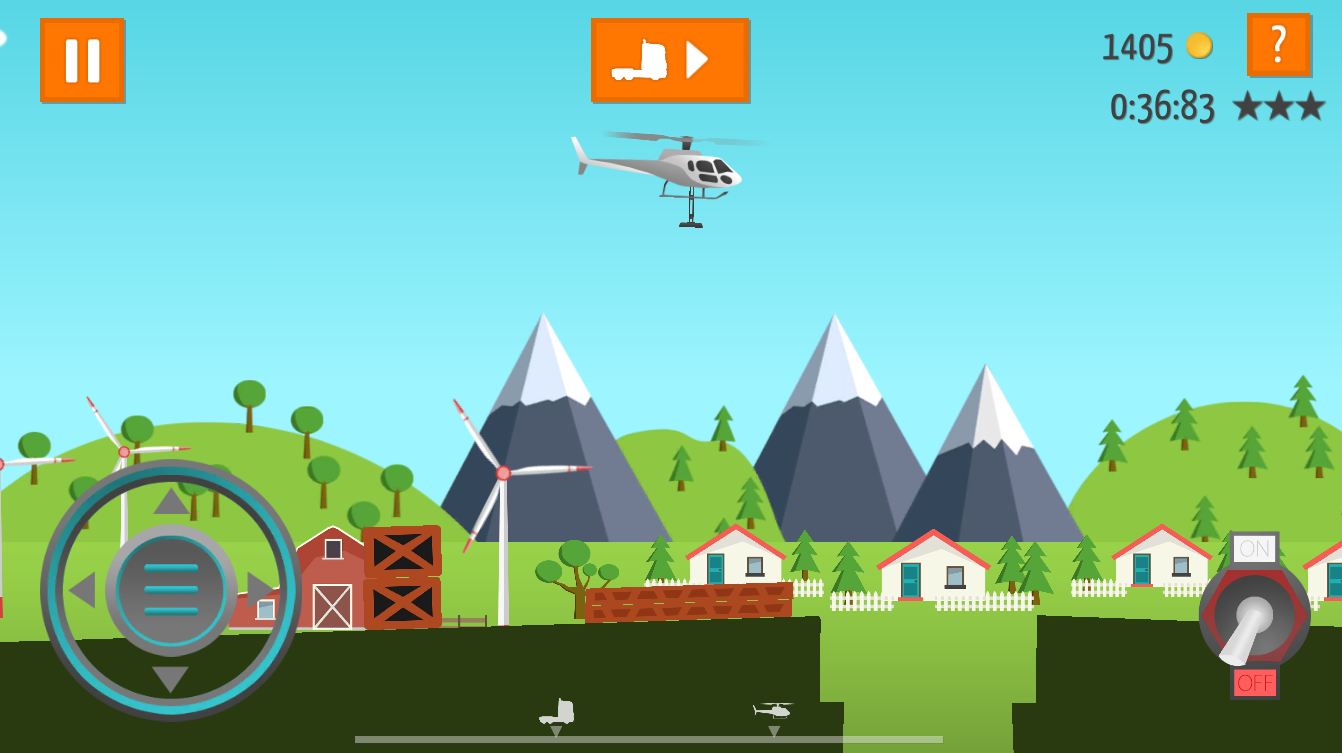 创新的双摇杆操控系统让飞行更精准,左手控制升降与转向,右手调节飞行姿态与视角。独创的道路修复玩法需要玩家在限定时间内完成桥梁搭建,过程中要注意燃油消耗和载重平衡。进阶模式中还加入了突发天气系统,雷暴天气下要特别注意仪表盘数据,真实的陀螺仪模拟会让手机产生震动反馈。
