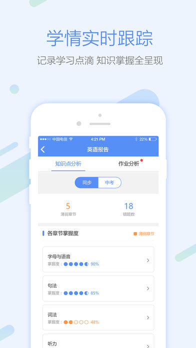 传统作业批改只能知道对错,却无法了解具体问题所在。一拍作业学生app提供详细的作业分析报告,不仅显示题目对错,更能精准指出你的知识薄弱点、与优秀同学的差距,并给出针对性的复习建议,让你对自己的学习情况了如指掌。