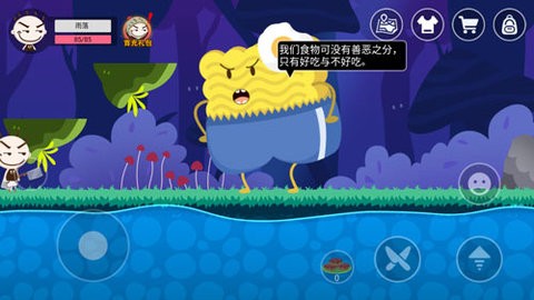 获取饭团炸弹的过程充满趣味性。首先需要前往基地右侧的第二个地区,在那里会遇到一个饭团NPC,它会告诉你它的兄弟在前方贩卖炸弹。继续向右探索,在较高的平台上可以找到饭团兄弟,但由于位置过高无法直接跳跃到达。这时需要返回基地,在煮锅中制作特殊的臭豆腐。这块臭豆腐可以当作垫脚石使用。制作完成后回到饭团兄弟下方的台阶,通过点击臭豆腐图标将其放置在合适位置,就能顺利跳上平台。与饭团兄弟对话后,它会进行炸弹演示,炸开下方的木桥,这正好是通往香肠林地的必经之路。确认炸弹效果后,就可以以100游戏币的合理价格进行购买。饭团炸弹主要有两大用途:一是炸毁特定地点的木桥开辟新道路,比如基地前的木桥被炸开后可以通往森林岔口地区,那里是前往冰川和洞穴的重要通道;二是在与强力boss对战时,炸弹可以造成巨额伤害,是扭转战局的关键道具。