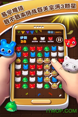 《宠物消消看》是一款充满欢乐与挑战的休闲益智游戏,专为喜爱宠物和消除类游戏的玩家精心打造。在这款游戏中,玩家将通过消除相同图案的宠物方块来完成各种有趣的关卡任务,解锁更多呆萌可爱的宠物角色和精美绝伦的游戏场景。游戏采用简单直观的操作方式,无论是小朋友还是成年人都能轻松上手,享受消除带来的无限乐趣。精心设计的数百个关卡各具特色,搭配多样化的道具系统和萌萌哒宠物形象,让玩家在体验消除快感的同时,还能感受到宠物养成的成就感。无论是想要放松心情还是挑战自我,《宠物消消看》都能为您带来愉悦而充实的游戏时光。