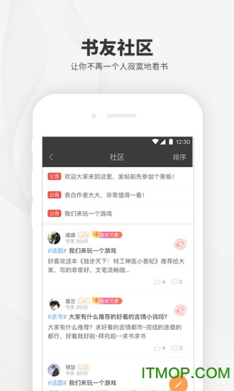 书友社区:全新上线的互动社区,书友互助交流,分享阅读心得,终结书荒困扰。
