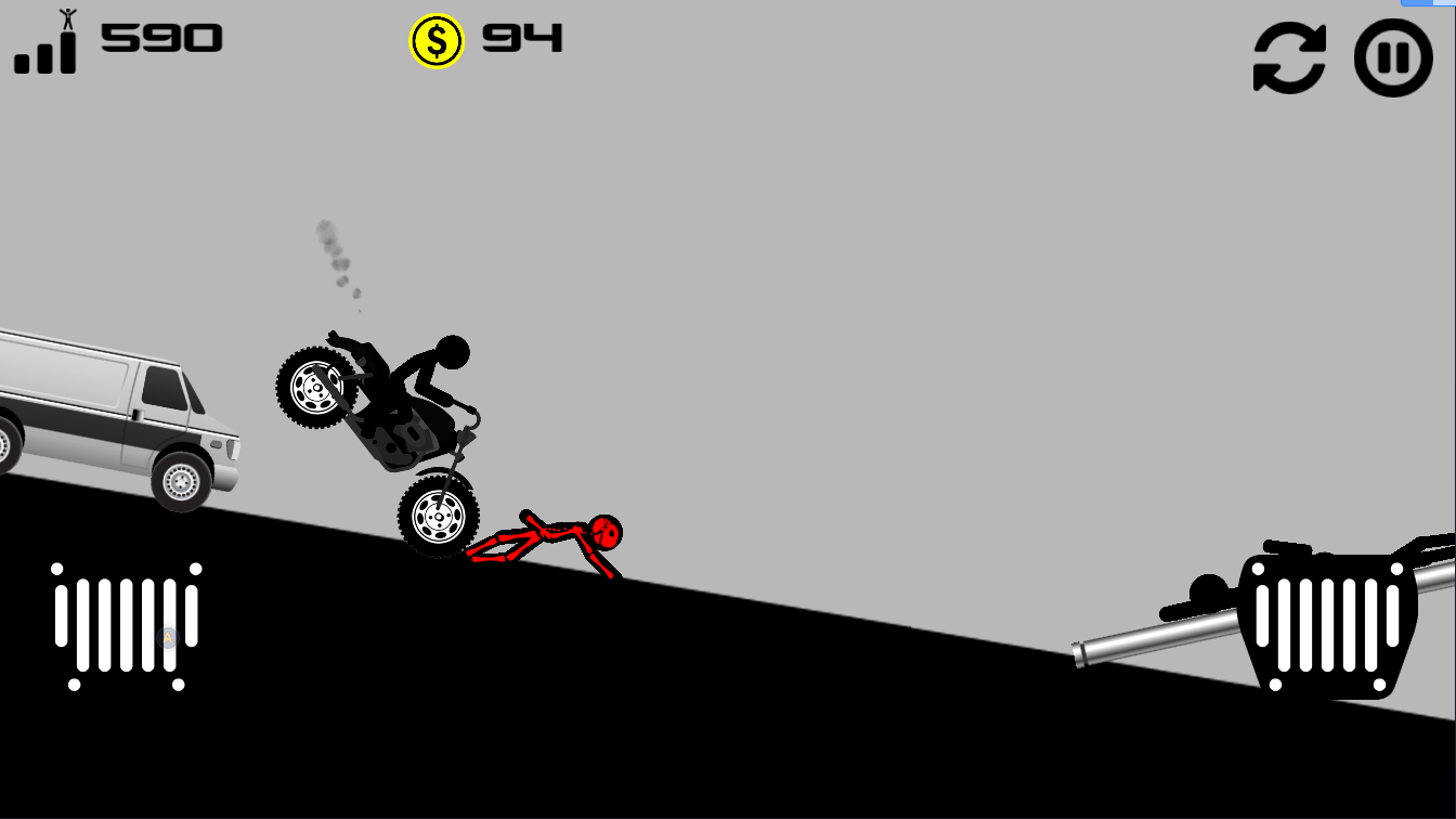 游戏的核心玩法是控制车辆在各种复杂地形中前进,利用精准的微操技巧碾压路上的火柴人。随着游戏进程的推进,赛道难度会逐渐提升,玩家需要应对更多障碍和挑战。游戏还特别设计了慢动作特写镜头,让玩家可以清晰看到火柴人被碾压时的每一个细节,这种独特的暴力美学正是游戏的魅力所在。