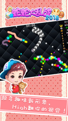 《蛇蛇大乱战2018》是一款充满趣味与挑战的休闲竞技游戏,以其独特的Q版画风和丰富的玩法吸引了众多玩家。游戏不仅拥有超多趣味新形象,还通过精心设计的界面和互动玩法,为玩家带来全新的视觉与操作体验。无论是萌萌哒的蛇蛇造型,还是五彩斑斓的游戏场景,都能让你High翻全场,沉浸在欢乐的游戏氛围中。
