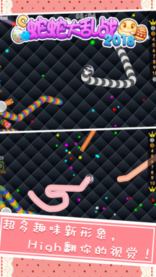 在《蛇蛇大乱战2018》中,玩家需要通过虚拟摇杆控制小蛇的移动方向,吃掉地图上随机刷新的彩色小圆点来增长身体。随着蛇身变长,挑战也会逐渐升级,你需要更加灵活地走位,避免蛇头撞到其他障碍物或对手的蛇身,否则游戏就会结束。不过,死亡并非终点,你的蛇身会化作大量小圆点,为其他玩家提供成长机会。