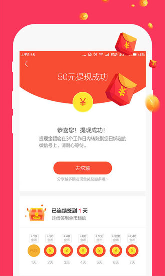 独特的闹铃提醒功能,在看新闻的同时及时通知你红包到账。系统会在红包发放时通过闹铃提醒,确保你不会错过任何一个赚钱机会,真正做到资讯与收益两不误。