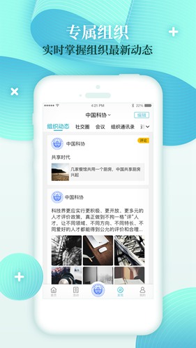 组织管理:科技人员可加入感兴趣的组织,实时掌握组织动态。