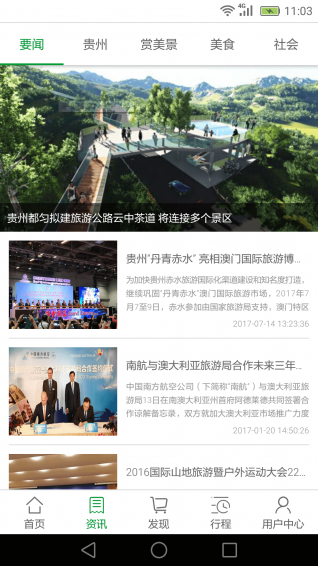《云游贵州》App采用模块化设计,为用户提供清晰便捷的操作体验。"首页"板块整合了贵州旅游的各类服务信息,包括特色美食推荐、精品住宿选择、交通出行指南等;"咨询"模块实时更新贵州旅游动态和政策变化,让您随时掌握最新资讯;"发现"模块汇集了当地热门景点、特色活动、优惠门票等实用信息;"行程"模块支持个性化行程定制,您可以根据自己的喜好自由安排旅行计划;"用户中心"则集中管理您的订单信息、行程记录和个人资料,让旅行管理更加高效。