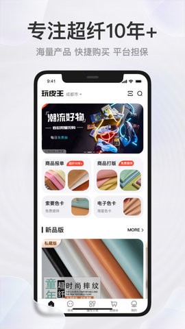 为用户提供优质的掌上交易服务,让每一位用户都能在应用中轻松购买到喜爱的产品,既方便又高效,交易流程安全可靠。有各种皮革制品,能满足有需求用户的购物欲望,所有产品均为优质产品,严格挑选,确保购物质量,支持七天无理由退换。玩皮王是一款十分优惠全面的手机购物软件,为用户提供非常专业的超纤皮采购服务,十分的方便,价格也是非常的优惠,经常推出特价商品。致力于建设集线上线下价值呈现、产品交易,服务交易,金融服务,设计服务,皮革时尚社交,娱乐好玩为一体的互联网生态圈,打造皮革行业的综合服务平台。软件特别推出猜你喜欢页面,在这里系统会对你的购买记录进行分析,随后向你推荐与常购商品同类或相似的商品资源,非常方便查找喜欢的商品,推荐算法精准智能。