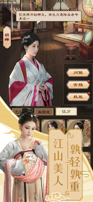 江山美人,孰轻孰重:在权力与爱情之间做出艰难抉择,每个选择都将影响游戏进程和结局。