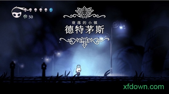 神圣巢穴的首都——泪之城(CityofTears),是一座位于洞穴中的繁荣都市,那里随时都下着雨。就在发现它十个小时之后,笔者偶然经过了宁静的蓝湖(BlueLake)。打开地图,笔者发现这片庞大的水域正好坐落在泪之城的正上方,而之前的一切也就有了合理的解释。《空洞骑士》并不会将这些信息直白地告诉你,它会让你自由自在地探索与发现,并最终形成属于自己的解读。
