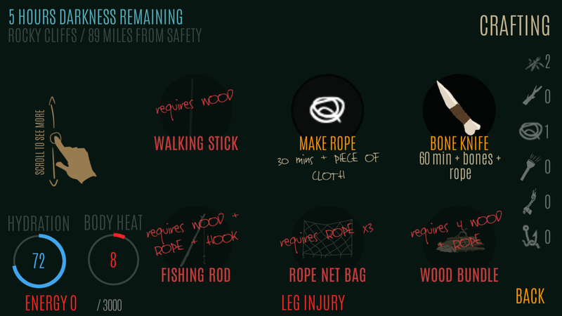 游戏最突出的特色是其极致的真实感。开发者精心模拟了各种荒野生存场景,从伤口感染的处理到食物腐败的速度,每个细节都力求还原现实。独特的黑暗主题为游戏增添了紧张氛围,手电筒的有限电量让夜间探索充满策略性。