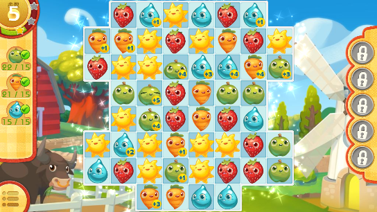 不再是漫无目的的消除,而是每个关卡都要在指定的步骤数收集齐所需要的农作物,当你的收集远远超出所需要的数量时,你能感受到丰收的喜悦。这种目标导向的玩法让游戏更具挑战性和成就感,玩家需要合理规划每一步的消除策略,才能在有限的步数内完成任务。