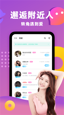 基于大数据分析的智能推荐系统,能快速为你匹配最合适的交友对象,让用户随时随地享受高效便捷的社交服务。平台不断更新丰富多样的互动玩法,从线上游戏到线下活动,在活跃的社区氛围中结识志同道合的朋友。精准的缘分匹配算法结合用户行为分析,让你在最短时间内找到心仪对象,告别单身不再是遥不可及的梦想。