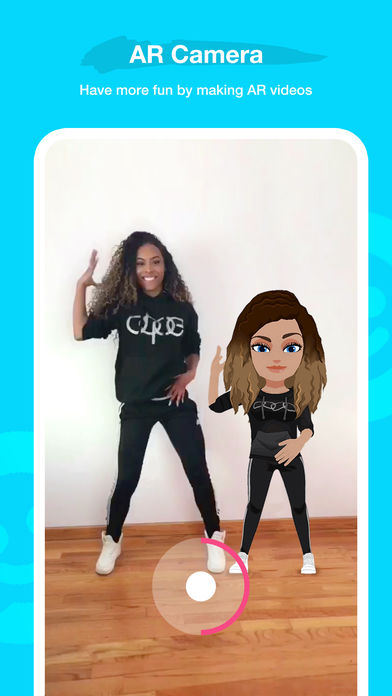基于"增大化现实"技术的相机:你可以用短视频与你自己的头像或你的朋友或偶像互动。AR功能支持实时面部追踪,让你的3D形象能够跟随你的表情变化,创造出趣味十足的互动视频。