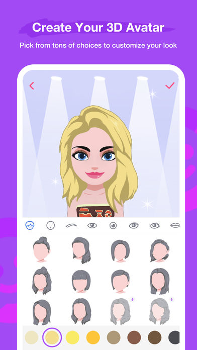 创建3D《阿凡达》:boomoji提供各种肤色,眼睛颜色,发型,发色等等,让你看起来更像你。从脸型到五官比例,每个细节都可以精细调整,确保你的虚拟形象完美呈现你的个性特征。