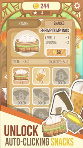 点击升级您的店面,点击获取,简单的机制很容易学习,消磨时间也很有趣,渐进式设计,增加你拉面条的能力。游戏采用直观的点击操作方式,通过不断升级厨房设备和员工技能,可以显著提升拉面制作效率。随着店铺规模的扩大,还能解锁自动化设备,让经营变得更加轻松。