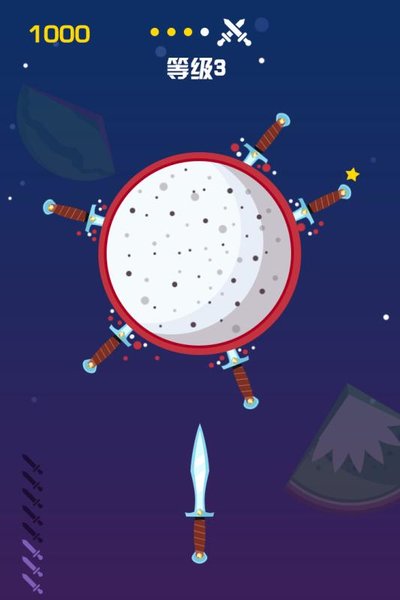 游戏的核心玩法看似简单实则充满技巧:你需要精准把握时机,将飞刀插入旋转的转盘空隙中。要特别注意避免与其他飞刀发生碰撞,否则可能导致游戏失败。每局游戏都要求玩家将所有飞刀完美插入转盘,随着关卡提升,转盘转速会越来越快,空隙也会越来越小。游戏还设置了多种特殊转盘,如会变形的转盘、会突然加速的转盘等,大大增加了游戏的挑战性。