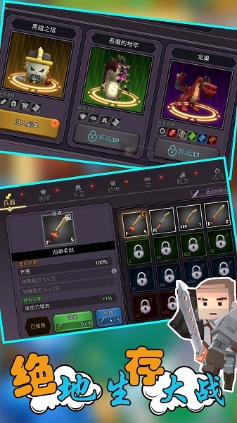 游戏中的每件武器都经过精心设计,从攻击方式到打击感都各具特色,玩家可以体验到完全不同的战斗风格。直观简洁的UI界面让操作更加便捷,即使是新手也能快速上手。随着游戏进程推进,关卡难度会逐步提升,从简单的生存挑战到复杂的Boss战,带给玩家持续的新鲜感和成就感。此外,游戏还加入了天气系统和昼夜交替,让战斗环境更加多变真实。