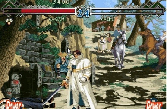 SNK公司1997年推出的《月华剑士1》是NeoGeo平台的标志性格斗杰作。游戏以动荡的幕末维新为时代背景,构建了一个融合真实历史人物与超自然力量的奇幻世界观。玩家可操控包括新选组武士、流浪剑客等12名角色,每位都配有专属的武器模组与流派招式。革命性的"剑质"系统提供"力"(刚猛)、"技"(灵巧)、"极"(均衡)三种战斗风格切换,配合怒气积累触发的"潜在奥义"必杀系统,创造出层次丰富的战术选择。游戏还特别设计了细腻的弹刀、闪避等传统剑术动作,配合16位色精绘的像素动画,完美呈现了剑戟交锋的震撼场面。