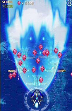 游戏采用经典的太空空战题材,玩家将在充满科技感的宇宙场景中与敌人展开激烈交锋。通过不断击败敌人积累能量,当能量槽蓄满时即可进入无敌状态,挑战更强大的敌人。游戏设计了数十个精心打造的关卡,每个关卡都拥有独特的场景设计和敌人配置,配合华丽的弹幕特效,让玩家欲罢不能。在战斗过程中,玩家要善用场景中随机出现的各种道具,比如可以抵挡伤害的护盾和能瞬间消灭敌人的特殊武器。游戏采用直观的双摇杆操作方式,左侧摇杆控制战机移动,右侧摇杆控制射击方向,同时左侧还设有两个主动技能按钮,右侧则配备了护盾技能,操作简单却充满策略性。