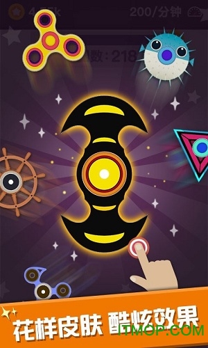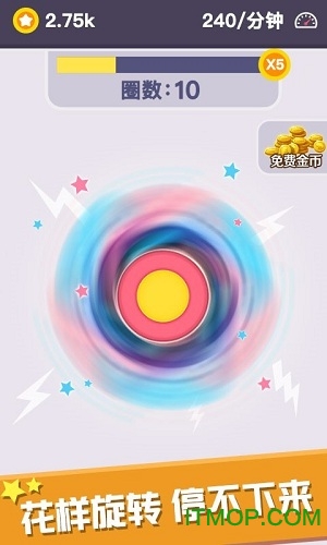 独特陀螺玩法魔性的旋转变化,还会出现反向旋转和静止不动的"视觉暂留"效应哦;每次等级提升都会解锁一款全新的炫酷样式。游戏还设有全球排行榜,让玩家可以与世界各地的陀螺爱好者一较高下。