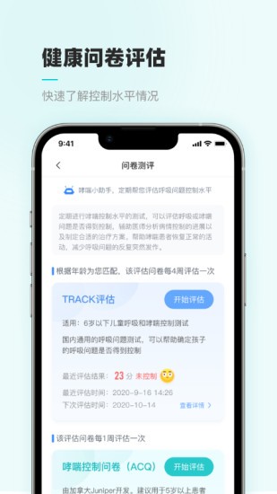 定期健康问卷评估,帮助用户和医生确定呼吸问题是否得到控制,辅助医师分析病情控制情况以便更好的治疗;问卷内容由专业医疗团队设计,涵盖呼吸功能、症状变化等多个维度,确保评估的全面性和专业性。