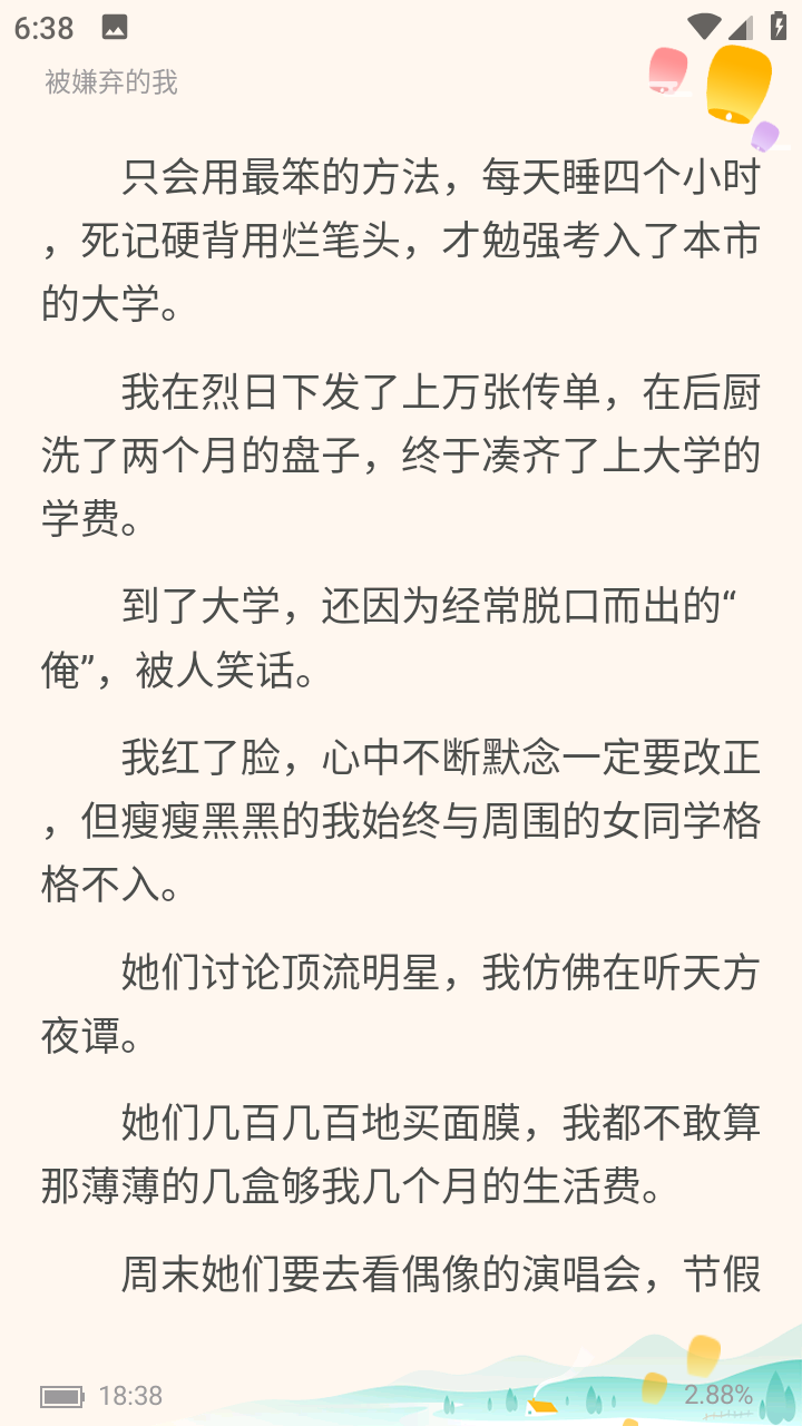 阅读:除了海量书籍,还有精品漫画等你阅读,满足不同用户的娱乐需求。海量小说:丰富的小说内容库持续更新,让你可以获得更多优质小说体验。精致界面:独特的阅读界面设计,采用护眼配色方案,为你打造优质的使用体验。阅读设置:对于阅读界面进行个性化设置,包括字体、间距、背景等,打造自己喜欢的阅读模板。夜间模式、自动翻页等贴心功能一应俱全,让您的阅读体验更加舒适便捷。