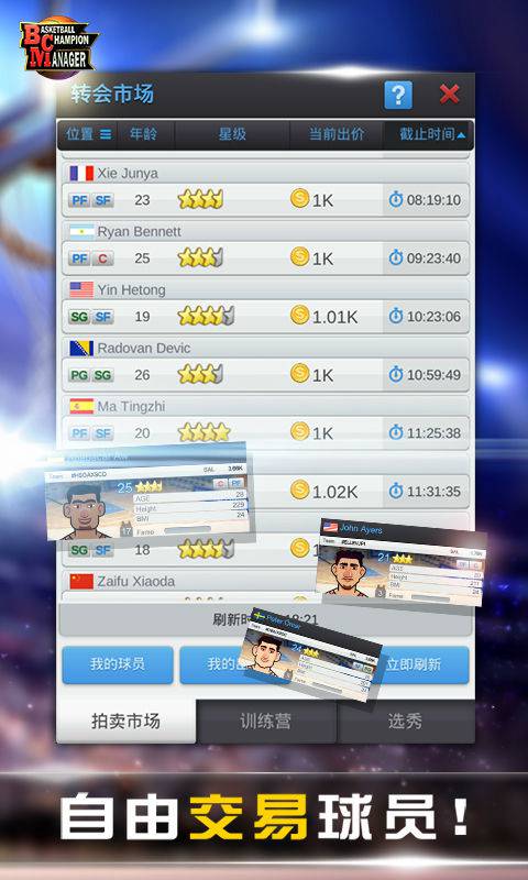 《篮球经理》是一款沉浸式篮球俱乐部经营模拟游戏,玩家将化身职业经理人,从球员招募到战术制定全程掌控。游戏采用真实物理引擎打造比赛场景,超过200名风格各异的球员可供培养,通过科学的训练体系提升球员属性。九游版本特别提供新手豪华礼包,包含稀有球员卡和训练加速道具,助你快速组建梦之队征战全球联赛。细腻的球员成长系统和动态转会市场,让每场对决都充满策略博弈的乐趣。