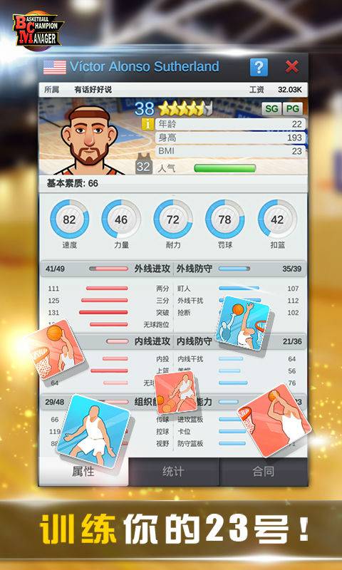 球员培养需要遵循科学的成长曲线,建议新手优先提升基础属性。每个联赛级别对应不同的训练上限,比如丙级联赛球员三分命中率最高只能练到65%,而升级到甲级后上限可突破85%。训练设施等级会影响效率,建议优先升级球馆的投篮训练机(提升15%外线训练效果)和力量房(增加8%体能训练速度)。球员定位要明确,控卫需重点培养传球(建议达到80+)和视野(75+),中锋则要强化篮板(85+)和盖帽(80+)能力。