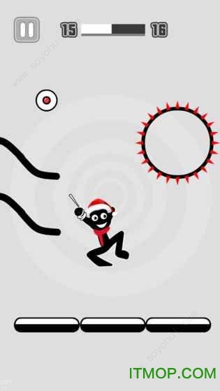 玩家需要通过触屏控制绳索发射方向,长按屏幕可以蓄力增加射程。当火柴人抓住绳索后,需要在最佳时机松开绳索完成飞跃。游戏引入"连荡"机制,连续完成多次完美摆荡可以获得速度加成。某些特殊关卡需要玩家利用环境中的弹簧板、移动平台等元素进行组合操作。随着游戏进程,玩家将解锁二段跳、空中转向等进阶技巧,应对更复杂的关卡设计。