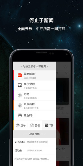 界面新闻app是一款专为独立思考人群打造的高品质新闻与商业社交平台。它以独特的视角和深度的内容为核心,致力于为精英用户提供最具价值的资讯服务。在这里,您不仅能获取全球前沿的商业动态,还能与志同道合的高端人士建立连接,共同探讨商业世界的无限可能。