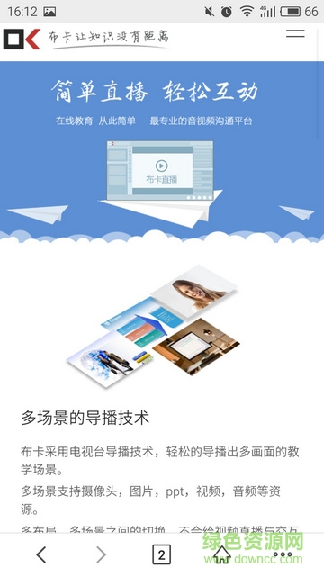 布卡互动客户端是布卡互动科技有限公司精心打造的一款专业级教育直播应用,它将直播、互动、录播三大核心功能完美融合,为用户带来前所未有的在线学习体验。这款应用不仅支持在线共享PPT、视频、音频、图片等多种文档类型,还能让用户随时随地通过手机轻松观看直播课程,打破时间和空间的限制。无论是企业培训、在线教育还是个人学习,布卡互动都能满足您的多样化需求。现在就来绿色资源网下载这款功能强大的教育直播应用,开启您的智慧学习之旅吧!