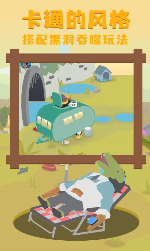 剧情互动:游戏内置了丰富的剧情内容,玩家在吞噬过程中会触发各种有趣的事件对话,通过与小镇居民的互动逐步了解这个奇妙世界的背景故事。