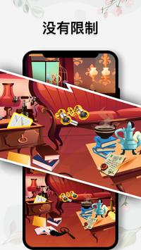 训练您的大脑!使用所有观察技巧,在每张照片中寻找15个以上的物体!游戏通过多样化的场景和精心设计的谜题,帮助玩家提升专注力和细节捕捉能力。您准备好参加最伟大的旅程了吗?游戏提供数十个风格迥异的场景,从温馨小屋到神秘古堡,每一处都充满惊喜。这是您可以找到的最好的隐藏对象游戏!画面精美,玩法创新,让寻物过程充满乐趣。目的是找到图片中所有隐藏的对象并解决难题!每个关卡都经过精心设计,确保挑战性与趣味性并存。玩得开心!使用提示更快地找到所有对象!游戏还提供多种辅助工具,帮助玩家顺利通关。