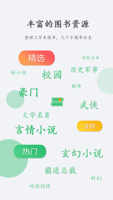 丰富的图书资源,整理上万本图书,几十个图书分类,言情小说、玄幻小说、奇幻小说、都市小说、轻小说、校园小说、历史小说、武侠小说、仙侠、军事小说、剧情、网游、科幻小说、灵异小说、侦探小说、纪实小说、霸道总裁、豪门千金、文学名著等等应有尽有;