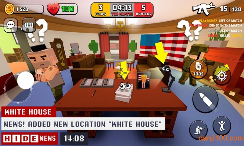 以追逃射击为核心玩法的游戏,游戏内我们会被匹配到白宫的某个角落,开始扮演猎人或者猎物的角色。每个角色都有专属的技能树系统,可以通过游戏进程逐步解锁。猎人会提起武器找寻并追杀猎物,而猎物需要做的就是变身成可以以假乱真的道具,在白宫里面躲起来,不要被猎人找到。变身系统支持多段变形,猎物可以逐步完善自己的伪装效果。玩家在不同的身份之中来回切换,这样你就能够熟悉所有玩法和规则享受更多乐趣。游戏还设有排位系统,让高手玩家能够获得更具挑战性的对战体验。和世界各地的玩家展开竞技对战,全新躲迷藏玩法带给你无穷欢乐,尽情展开竞技冒险。每周都会更新特殊模式,保持游戏的新鲜感。