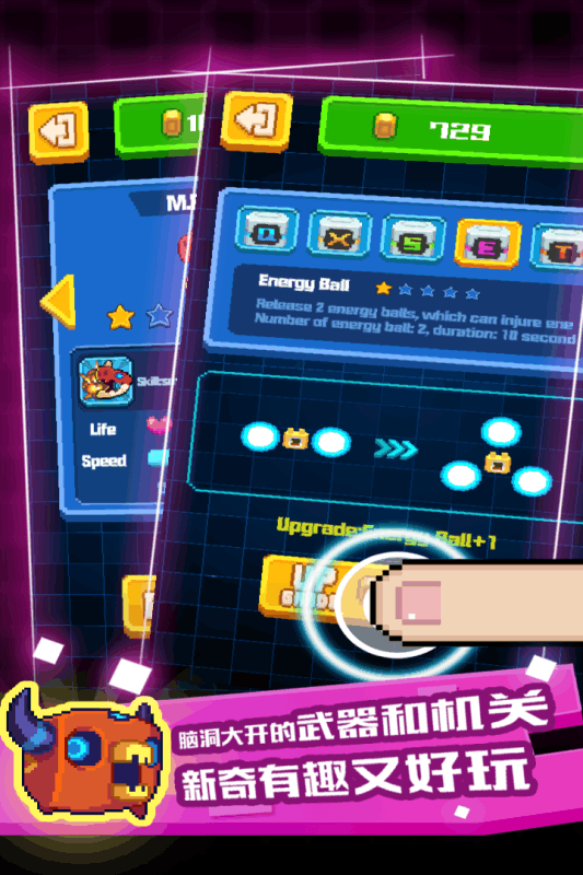 经济系统方面,游戏设计了较为完善的成长机制,货币获取效率较高,玩家无需氪金也能获得完整的游戏体验。游戏目前提供攻关和无尽两种模式,既继承了传统游戏的经典元素,又在攻击机制、反弹墙等细节上进行了创新改良。总体而言,像素小怪兽是一款集怀旧与创新于一身的精品游戏,无论是操作手感、游戏内容还是成长系统都经过精心打磨,在同类型游戏中具有明显的竞争优势。