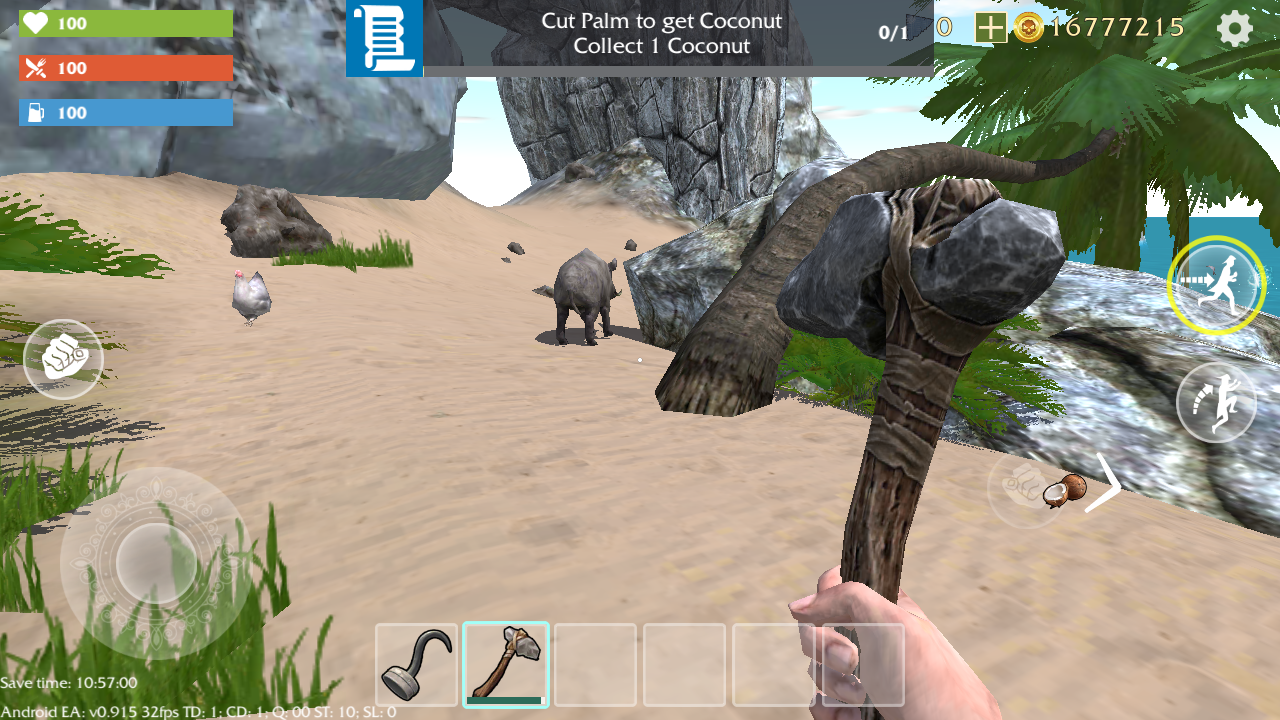 逼真写实的游戏场景,精美的游戏画面,让玩家有十分真实的荒岛求生体验。游戏采用先进的物理引擎和光影效果,完美还原了热带岛屿的昼夜交替和天气变化,从摇曳的棕榈树到波光粼粼的海面,每一处细节都令人惊叹。