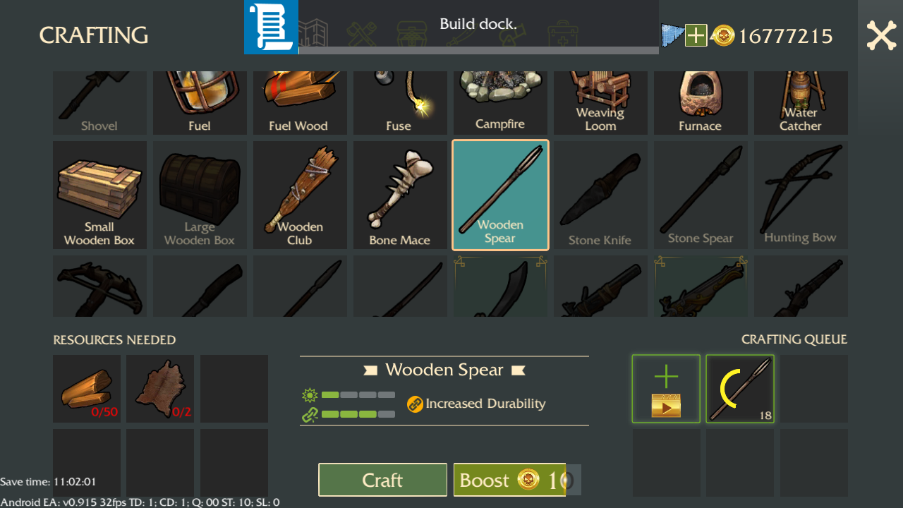 收集各种资源,建造各种工具,一步步稳健的发展。从简易的篝火到坚固的木屋,从石制工具到金属武器,建造系统提供了丰富的选择。