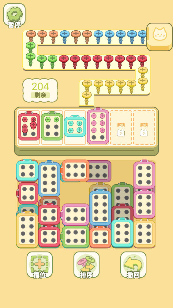 游戏的核心玩法是通过消除四消螺丝来完成关卡挑战。玩家需要仔细观察棋盘布局,寻找最佳消除路径,通过连线相同颜色的螺丝进行消除。每次成功消除都能获得相应数量的螺丝奖励,这些螺丝将成为你装饰小屋的重要资源。随着游戏进程推进,你可以使用收集到的螺丝兑换各种风格的家具和装饰品,从简约现代到复古田园应有尽有。部分高难度关卡需要玩家发挥更强的观察力和策略思维,巧妙运用特殊道具才能顺利通关。游戏还设有每日挑战和限时活动,为玩家提供更多获取稀有装饰品的机会。