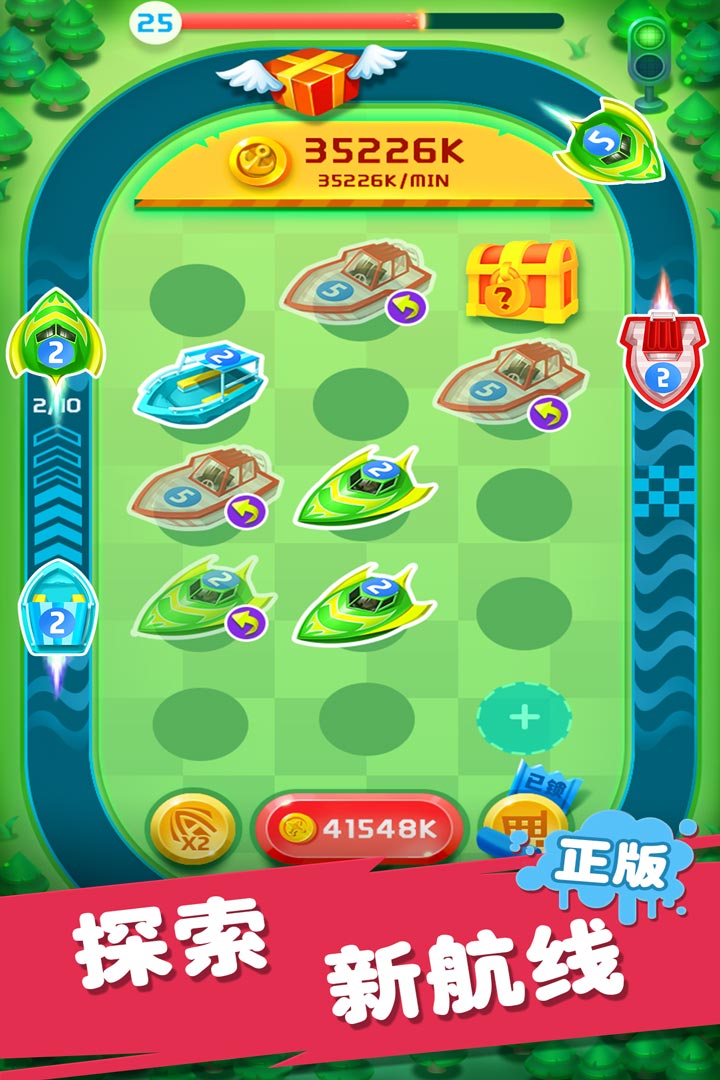 《迷你战舰合成》的核心玩法简单易懂却富有深度。游戏开始时,玩家会获得基础的迷你战舰,通过将两艘相同等级的战舰合并,就能创造出更高级别的强大战舰。随着游戏的进行,玩家需要合理安排战舰的航行路线,让它们在各个航线上执行任务,赚取丰厚的金币奖励。这些金币可以用来购买新的战舰,或者升级现有战舰的性能,形成良性循环的发展模式。