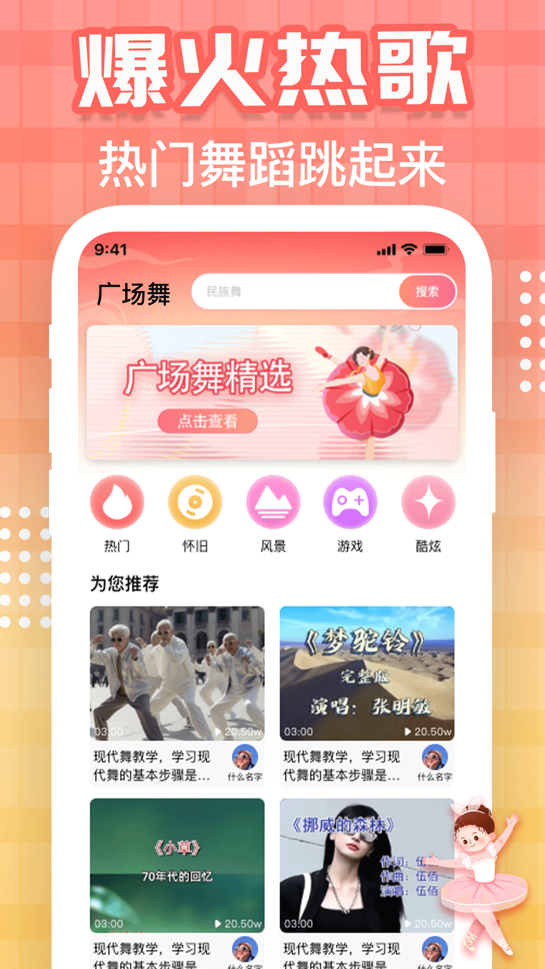 广场舞视频大全是一款专为舞蹈爱好者打造的优质视频平台,汇集了海量精选舞蹈教学资源,为您带来前所未有的学习体验。无论您是钟情于优雅的经典民族舞、充满活力的现代健身舞,还是追求潮流的时尚流行舞步,这里都能满足您的各种舞蹈需求。平台拥有数千部高清教学视频,每一部都经过专业团队精心挑选,确保内容优质、动作规范、讲解细致。