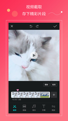 【音乐搭配】支持本地音乐导入和在线音乐库,精准剪辑音乐片段,让你的视频与背景音乐完美同步。