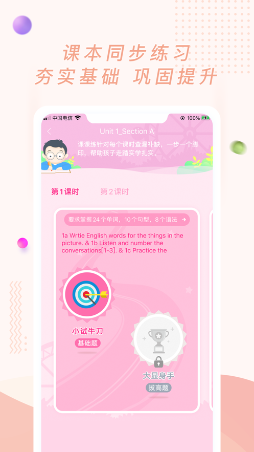 【课课练】:针对课本每个单元每个课时,配备同步练习题库,包含听力、语法、阅读等多种题型,夯实基础,巩固提升;