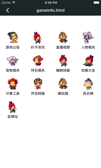 游戏公告,游戏资料,任务相关,科举相关,技能相关,游戏直播,交友组队等