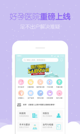 一站式好孕医院:平台汇聚全国5000+三甲医院妇产科专家,提供包括免费医生咨询、私人健康顾问、医院挂号、检查预约、手术安排等全方位医疗服务。同时我们还提供海内外试管婴儿等高端医疗资源对接,真正实现一站式助孕服务。
